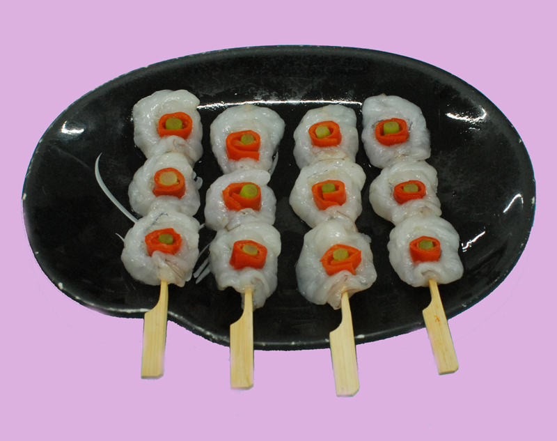 產品名稱:蝦仁紅蘿卜蒜芯串